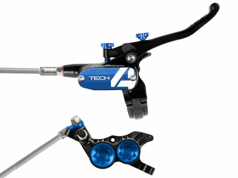 Son maitre cylindre est maintenant équipé de pivot levier monté sur roulements à billes et de nouveaux joints internes réduisant les frictions. L’augmentation de la démultiplication du levier d’environ 30% offre un meilleur feeling et une plus grande puissance tout en réduisant la fatique musculaire. La fixation du maitre cylindre du Tech 4 sur le guidon se fait par un système de collier à charnière très facile d’installation et compatible avec la fixation directe des commandes Shimano ISPEC EV et SRAM Matchmaker en utilisant des adaptateur vendus séparément. Toujours d’actualité, les vis BPC et Reach Adjust permettent d’ajuster la garde du levier et le contact plaquettes sans outil .