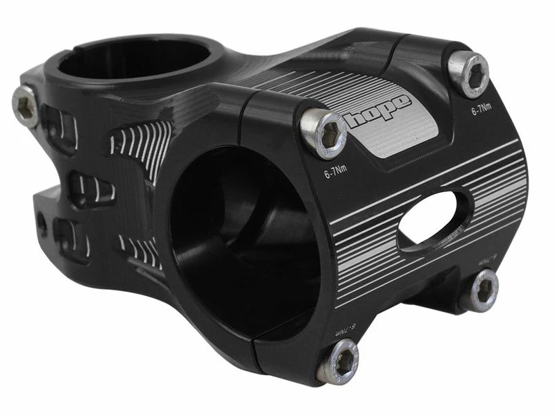 Spécifiquement dessinées pour les cintres de 35 mm de diamètre, les potences Hope AM 35 de chez Hope répondent aux exigences de la pratique de l’Enduro mais aussi du Freeride.Elles sont usinées à partir d’un bloc d’aluminium 2014 T6. Elles ont été redessinées pour en oter tout surplus de matière offrant ainsi un très bon rapport poids/resistance. Les vis de serrage de pivot sont positionnées en opposition afin d’offrir un maximum de précision de pilotage et ces potences sont disponibles en plusieurs longueurs, angles et couleurs.